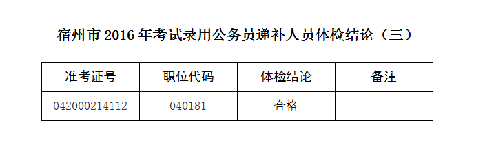 附:宿州市2016年考试录用公务员递补人员体检结论(三)